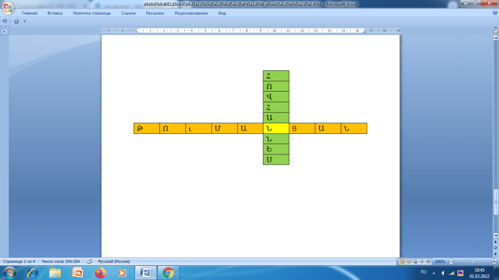 Օգտվելով այս աղյուսակից լուծեք խաչբառը․