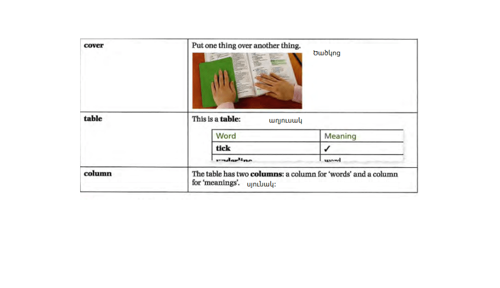 - Հատվածից դուրս գրիր գրությամբ և արտասանությամբ տարբերվող բառերը, օրինակ՝ խնդրել- թ լսում ենք, դ գրում