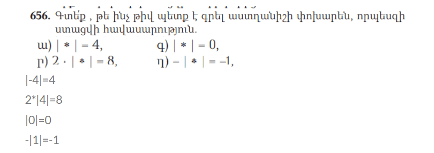 95. Հարցում արտահայտող բառերի փոխարեն համապատասխան բառեր կամ բառակապակցություններ գրելով՝ նախադասություննե´ր ստացիր: