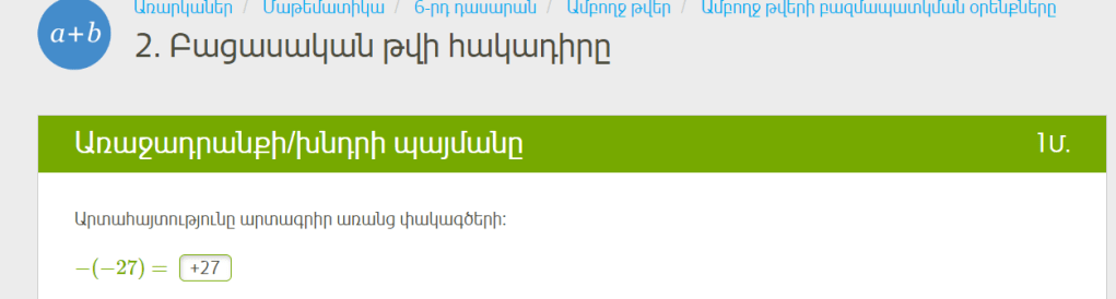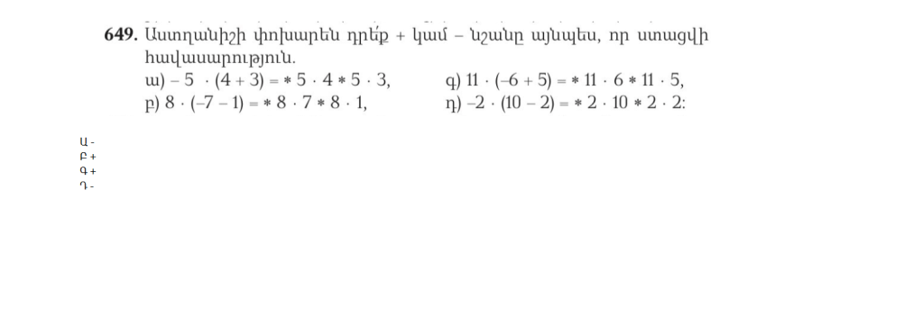բ) –7-ին հակադիր թվին գումարել 8 և –18 թվերի գումարը 7+8+-18=-3