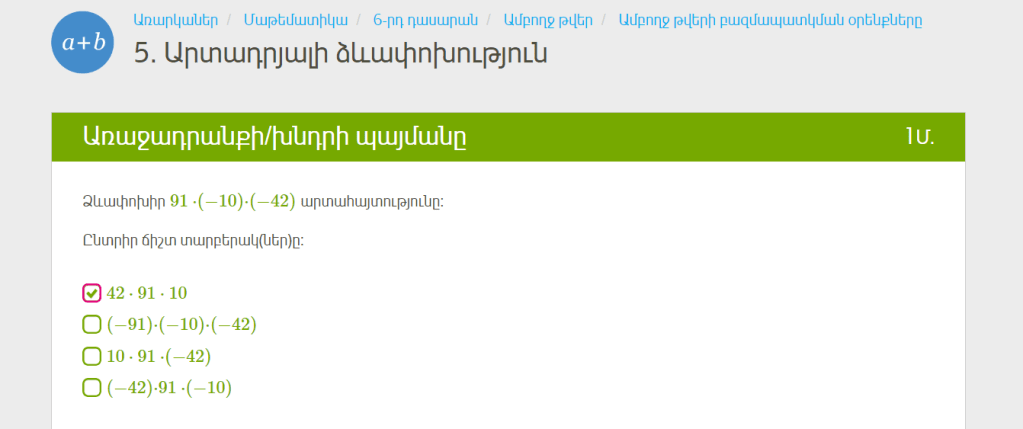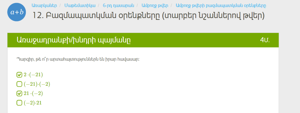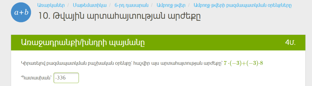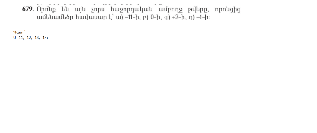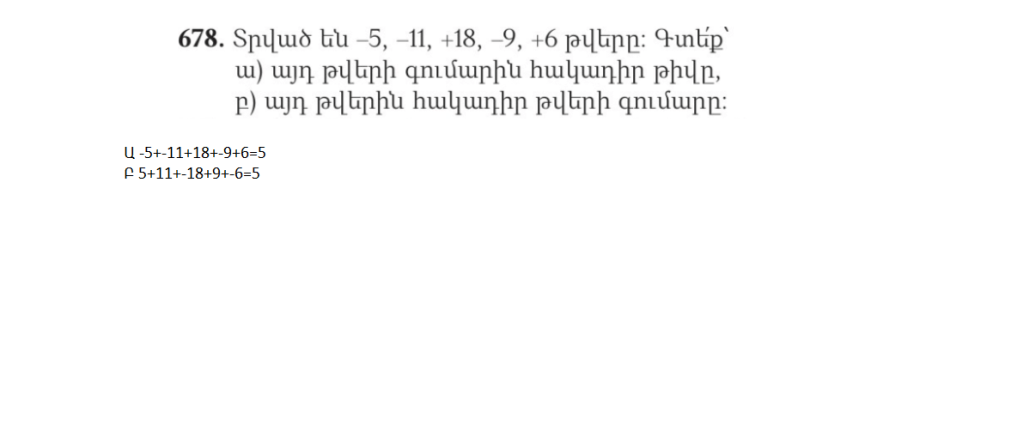 ա) –3 և –4 թվերի գումարին գումարել 11-ին հակադիր թիվը, -3+-4+-11=-18