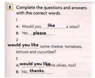 I’d like, Would you like? exercises d, e, b