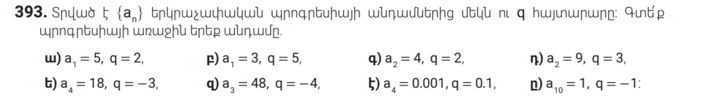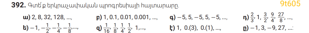 Հանրահաշիվ 9 Posted on March 31, 2026March 31, 2026 by mnacakanyanaren Ա 4, Բ 0.1 Գ -1, Դ 1.5 Ե 1/2 Զ 1/2 Է 0.(3) Ը -3 Ա 10 Բ 15 Գ 8 Դ 27 Ե -54 Զ -192 Է 0.0001 Ը -1 Share this: Share on X (Opens in new window) X Share on Facebook (Opens in new window) Facebook Like Loading... Related Published by mnacakanyanaren View all posts by mnacakanyanaren