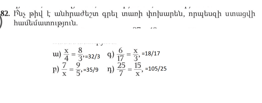 ?/6 կոտորակի համարիչում կարելի է տեղադրել x = Պատ.՝ 5/6