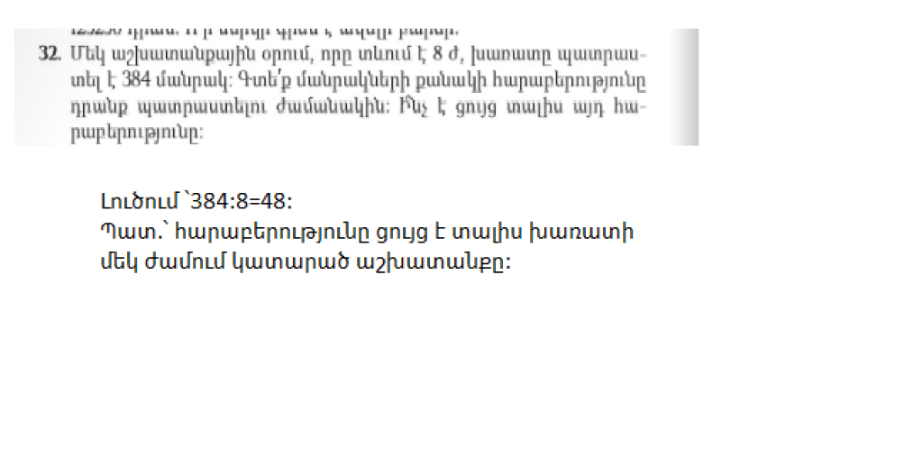 Օրինակ՝ 20/5=4 սա հարաբերություն է, երբ կոտորակի համարիչն և հայտարարն իրար ենք բաժանում:
