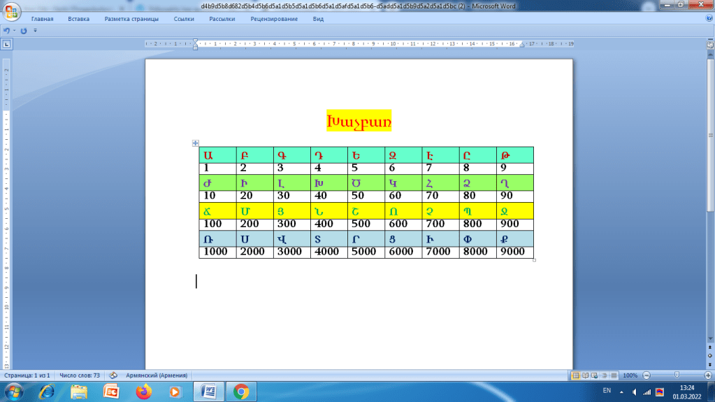 Օգտվելով այս աղյուսակից լուծեք խաչբառը․