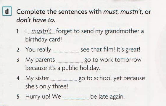 - Your homework must be finished by tomorrow afternoon. (MUST FINISH)
